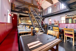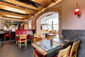 Cuisine ouverte sur la salle, mezzanine offrant un cellier mis à la disposition des amateurs de bons vins, il est également possible de profiter de la terrasse spacieuse dès les premiers rayons du soleil. Entrecôte minute, pavé d’Aloyau, brochette, côte à l’os d’Aubrac ou Simmenthal, mais également poissons et moules de saison sont à la carte, sans oublier le gigot d’agneau servi à volonté.