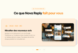 NovaReply simplifie également la collecte d’avis via email, SMS ou QR code, et propose un tableau de bord clair pour suivre l’évolution de la réputation et des performances.