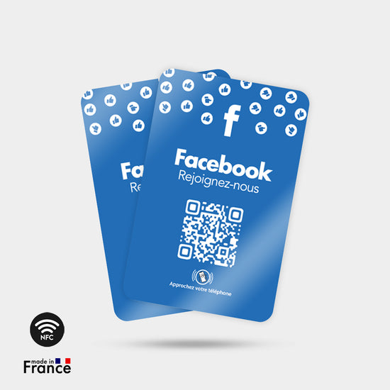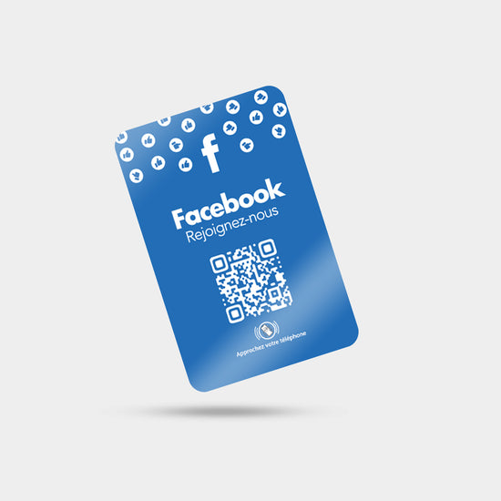 Carte de visite NFC Facebook permettant à vos clients d’accéder instantanément à votre page Facebook professionnelle. Un simple contact avec le smartphone ou un scan du QR Code suffit, sans application ni recherche. Moderne et pratique, cette carte remplace la carte de visite classique et facilite le suivi de votre page, la consultation de vos publications, événements et informations. Idéale pour restaurateurs et commerçants souhaitant développer leur communauté Facebook de manière simple et efficace.